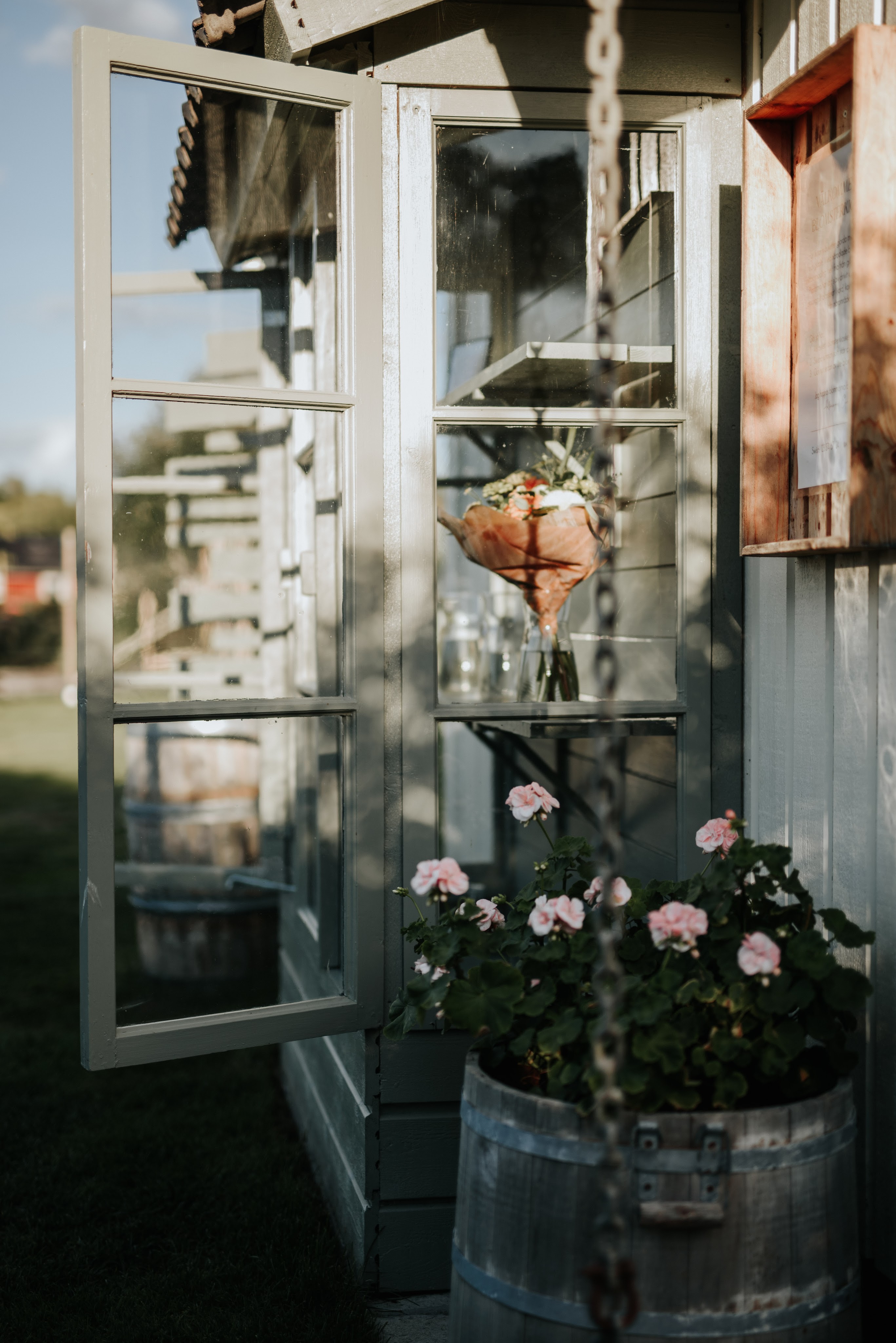 I blomsterkiosken säljs buketter bundna av egenodlade snitblommor. Buketter fyllda av säsongens finaste snittblommor. Krispiga tulpaner, pampiga dahlior och fräsigt höstfärgade kvistar. Blomsterkiosken följer årstiderna och fylls med det som för stunden är allra vackrast i naturen.