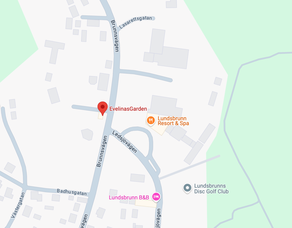 EvelinasGarden – Butik & Blomsterstudio ligger i den lilla byn Lundsbrunn. Bara ett stenkast från det blommande berget Kinnekulle i Västra Götaland. Den gula villan ligger i Brunnsparken mellan hotellbyggnaden Sörbodal och Brunnskyrkan på Lundsbrunn Resort & Spas område.